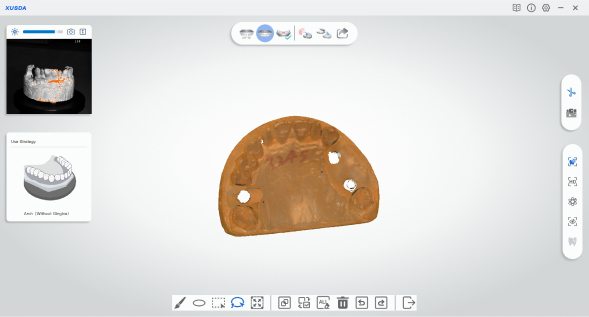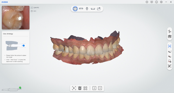 It supports various types of articulator scanning, supports switching between static and dynamic scanning, and meets various scanning needs. The dynamic articulator scanning mode can achieve full coverage of the occlusal surface and improve occlusal accuracy.